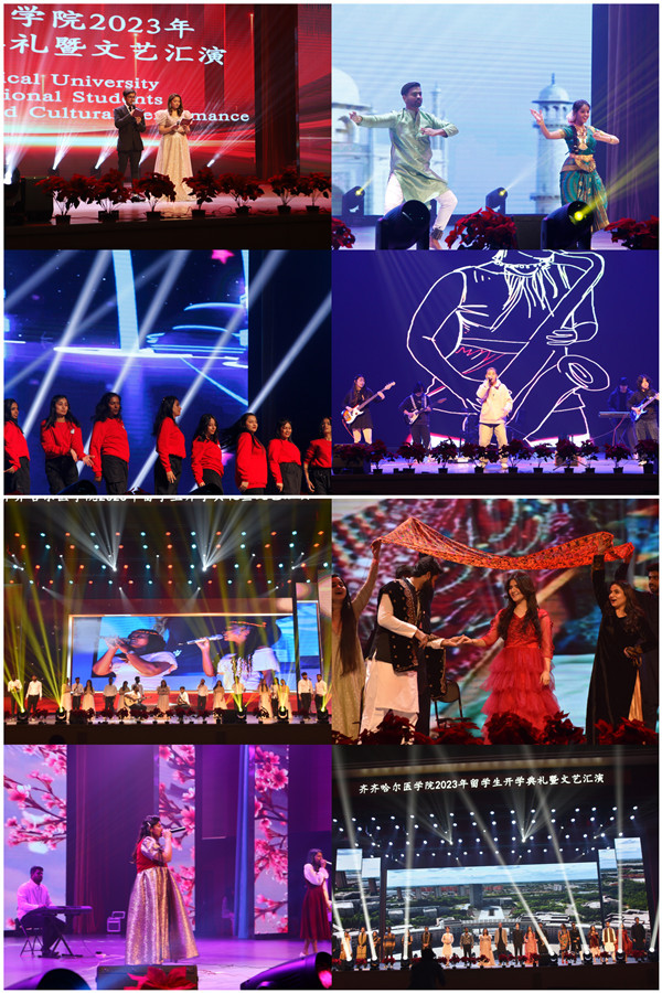随后,文艺汇演在散发着浓郁异域风情的印度古典舞蹈中拉开序幕。自由式街舞、歌曲串烧、舞台剧等一个个精彩的节目,为现场师生带来了强烈的视觉冲击和舞台震撼力,展现了学院留学生的良好精神风貌,晚会现场掌声喝彩声不断。文艺汇演在学院10个国家学生共同参演的时装走秀中落下帷幕。