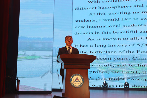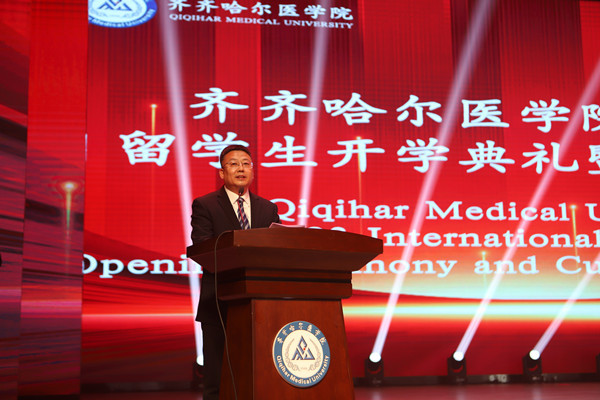 典礼上,赵光院长发表了热情洋溢的讲话,对2023年留学生的到来表示热烈欢迎。他介绍了中国近年来的飞速发展、齐齐哈尔地区的特色文化和学院概况,对2023年留学生提出了殷切希望,鼓励他们珍惜留学机会,在学习生活中树立明确的目标,崇尚学术、追求卓越,书写更加精彩的人生篇章。
