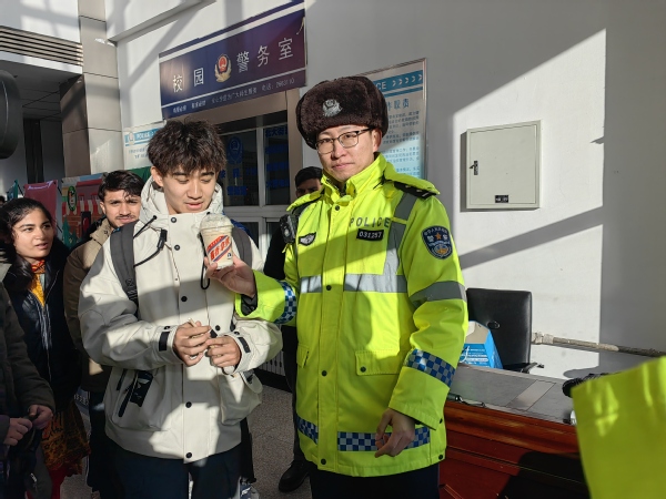 活动期间,建华交警大队工作人员通过在主楼北区一楼大厅摆放交通安全宣传展板、发放宣传资料等方式,向过往师生阐述开展“文明交通 你我同行”交通安全主题活动的目的和意义。同时,利用酒精检测仪、含有酒精成分的饮料等道具,现场向师生讲解冬季出行、避免酒驾、斑马线礼让行人等交通安全常识,并围绕全国交通安全日知识与学生互动,发出交通安全倡议。