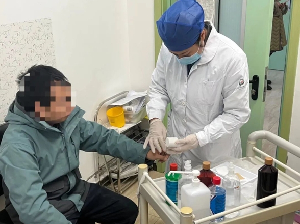 郭金刚主任查看患者摔伤部位