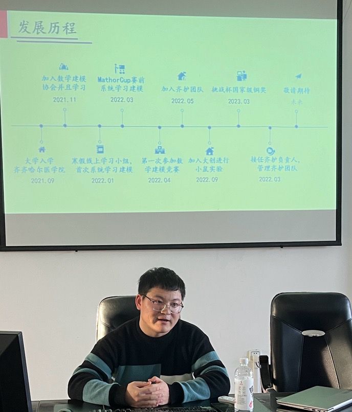 活动中,李军同学首先通过展示个人大学期间的参加科研、挑战杯竞赛、“互联网+”大学生创新创业大赛、数学建模类竞赛的个人发展历程向参会的同学介绍生涯规划,随后分别针对大学生参与竞赛项目、备赛的方向选择、项目挖掘、项目团队、参赛材料中的项目计划书的书写和PPT制作进行了分享。最后,针对参与学科赛事和创新创业竞赛相关问题进行了答疑环节。会后,同学们纷纷表示,对赛事准备和参赛过程以及大学期间的生涯规划有了充分的认知,坚定了以挑战精神逐梦青春的信心,明确了在大学期间如何规划未来以及确立自己的人生目标。