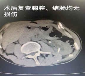 术后复查CT发现未损伤胸腔及肠管,穿刺通道无出血,结石无残留,一期清石率100%。复杂病例的高效治疗,标志着齐医附属二院泌尿外二病区的泌尿系结石的诊治能力已跃居省内一流水平。