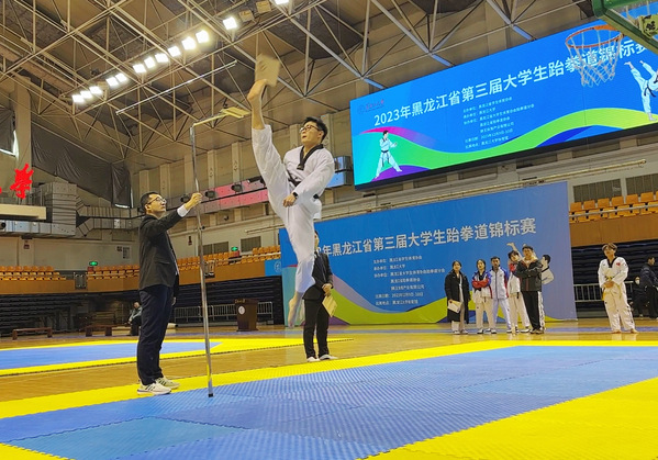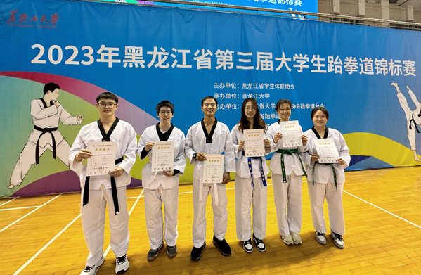 12月10日,第三届黑龙江省高校跆拳道锦标赛在黑龙江大学落下帷幕。本届赛会由黑龙江省教育厅大学生体育协会主办,黑龙江大学承办,共有30余所高校的500余名运动员参赛。学校在6个项目比赛中斩获3项冠军、3项季军,同时取得了团体击破总分第一的好成绩,刷新了学校在此项赛事上的纪录。