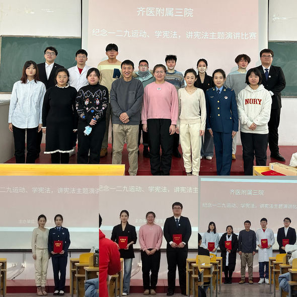 为铭记历史、缅怀先烈,深化学生的爱国情怀,同时普及宪法知识、弘扬宪法精神,由我院团委、学生科共同举办的“纪念‘一二·九’运动、‘学宪法,讲宪法’”主题演讲比赛于2023年12月9日在阶梯1教室正式拉开帷幕。我院团委书记王晓巍,学生科科长谭欣,学生科老师纪蕾、赵文凯担任比赛评委和颁奖嘉宾。