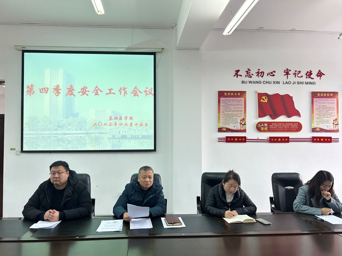 为深入贯彻落实习近平总书记关于校园安全工作重要指示精神,落实齐齐哈尔医学院第四季度安全工作会议精神,深刻吸取事故教训,部署下一阶段安全工作。基础医学院于12月15日下午在350会议室,召开了2023年第四季度安全工作会议。会议由党委书记潘洪明主持,基础医学院全体教职工参会。