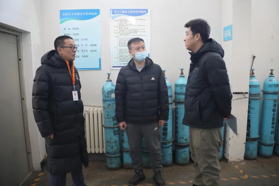 12月13日,省教育厅高校附属医院安全生产风险隐患专项排查整治行动第三工作组莅临我院检查督导工作。学院副院长、党委常委,附属医院安全生产风险隐患专项排查整治行动工作组组长史耀忠带队,学院保卫处处长、附属医院安全生产风险隐患专项排查整治行动工作组副组长孙立强及齐齐哈尔市卫健局、消防、市场局等部门相关人员13人组成专家组,对我院安全生产工作进行检查指导。我院领导班子成员及相关科室负责人参加汇报会并陪同检查。学院副院长、党委常委史耀忠主持会议。我院院长党委副书记李忠原做工作报告。