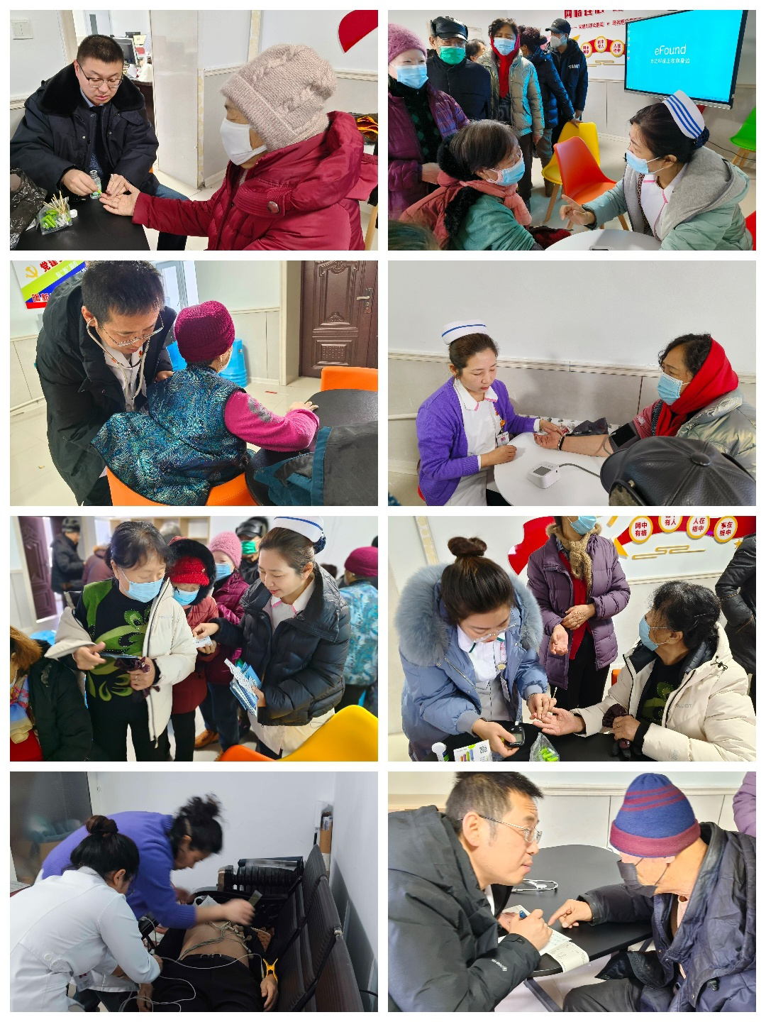 讲座结束后,医疗合作办刘洋主任,骨外科二病区护士长吴丽红,护士胡长玲、李姗津为现场居民做心电、测量血糖、血压,提供相关健康生活指导、慢性疾病知识指导、睡眠和心理健康知识咨询等。同时,护理宣传小组还准备了疾病宣传手册对居民进行一对一指导。此次活动的开展不仅提高了居民自我保健意识,还向大家传递了健康的生活理念,在严寒的冬日为社区居民送去健康和关爱,受到了社区居民的一致好评。
