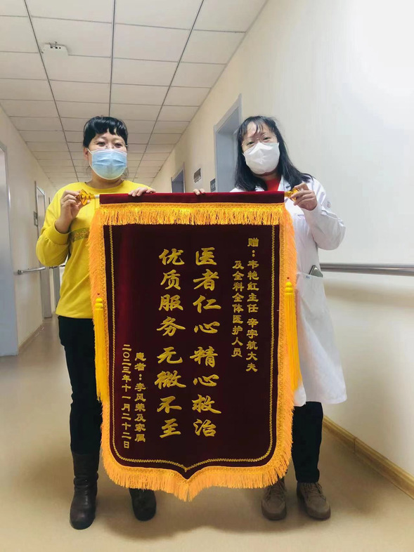 患者病情好转了,出院回家了,为全科医护人员送来了锦旗,这是莫大的鼓励及肯定。锦旗并不能代表什么,但它会是医护人员行医过程中的一种提醒,鼓励他们要刻苦专研业务,用满满的热情对待患者,治愈患者的过程中,也治愈自己。