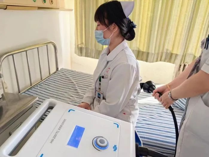 丛护士自告奋勇说:“以前我给患者做排痰仪操作时,总有患者说不舒服,后来就拒绝使用,即便是对于肺部炎症很重的患者都宁愿冒着病情加重的风险也不愿使用。正好最近我有痰总咳不出,今天我来试试排痰设备。”体验排痰设备后,丛护士说:“起初使用排痰机的时候频率不是很大,就像是按摩,虽然没有痰液排出来,但觉得很舒服。后来随着频率的加大,我会觉得有点心慌和恶心,但是痰液能够顺利排出了,效果还是挺好的!经过这次体验,我终于理解患者为什么拒绝排痰仪的使用了。以后我在操作的时候会更注重和患者的交流,尽量找到每个人既舒适又能排痰的平衡点。”