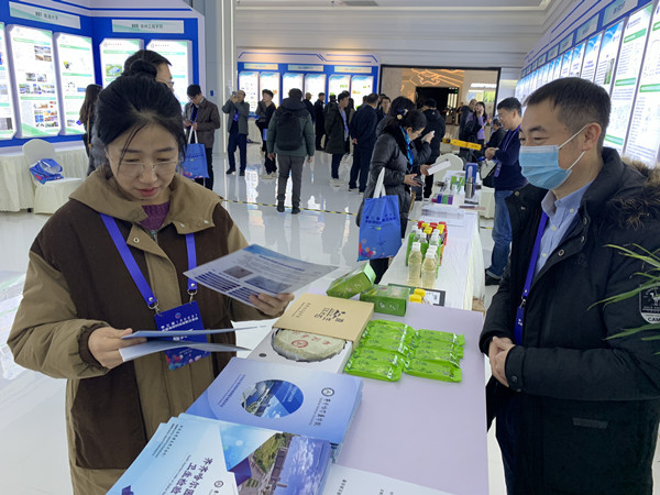 此次会议主题为“促进产学深度融合 携手创新共赢发展”,旨在加快推进“千校万企”协同创新伙伴行动,突出“四链”融合,推动全国高校技术转移转化,服务教育强国建设。全国包括清华大学、北京大学等全国350所高校的专家学者、企业代表等到场参加系列活动。经举办方遴选,学院玉米须系列、黄芪系列、柳蒿芽系列以及姬松茸香菇茯苓片等11种优质产品以实物产品形式在交易会现场展示。学院工作人员向参会人员介绍了学院在科学研究、社会服务、成果转化等方面取得的成绩,发放了学院科技研发与转化平台、卫生检验中心宣传册700余册,并与多个单位初步达成合作意向。