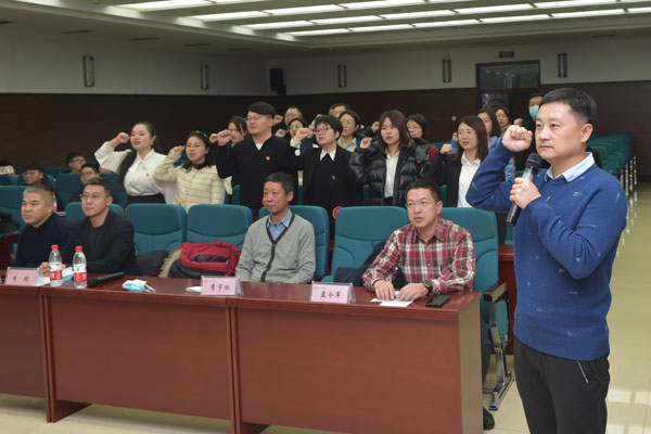 在精神卫生学院党总支副书记刘兴来的带领下,辅导员们重温了辅导员誓词。