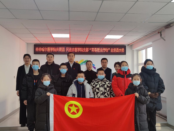 为深入贯彻落实党的二十大精神,持续推动“龙江是我家系列活动”走深走实,帮助重点青少年群体解决生活和学习中的困难,按照《关于在2024年元日、春节期间深入开展共青团送温暖“青春暖流行动”的通知》要求,1月5日,学院团委书记刘柏人、副书记李嘉,省青联委员、民进齐医支部主委、研究生处副处长卢长方,学院心理专家、精神卫生学院副院长孙正海等一行5人,共赴西大桥街道开展“青春暖流行动”,调研了解困境儿童的学习和生活情况,为他们送去温暖和爱心。