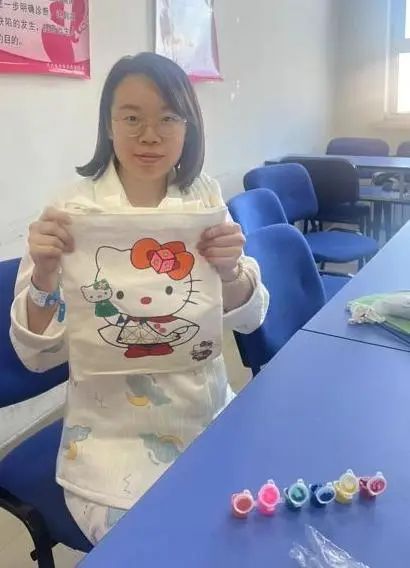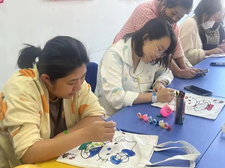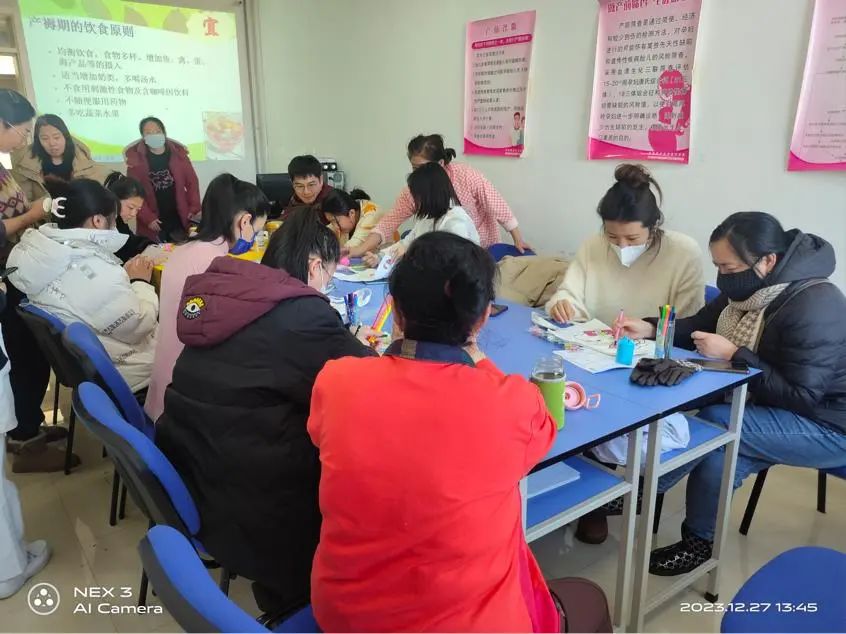 2023年12月27日,齐医附属一院妇产科举办孕妇学校活动,在妇产科示教室举办了手工DIY绘画手提袋的制作活动。