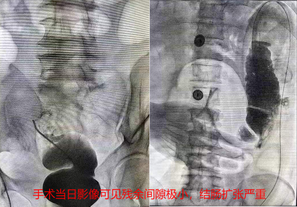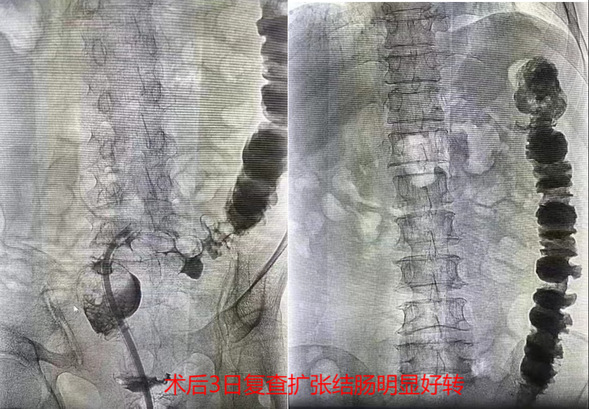 术后,在我院医护人员、患者及家属共同努力下,坚持经肠梗阻导管冲洗减压,患者腹胀腹痛症状较前明显好转。