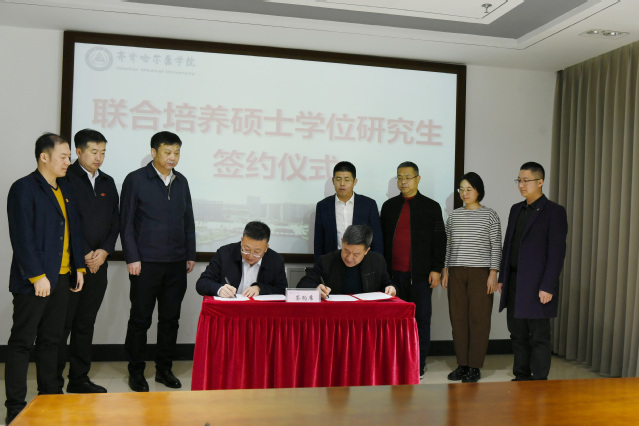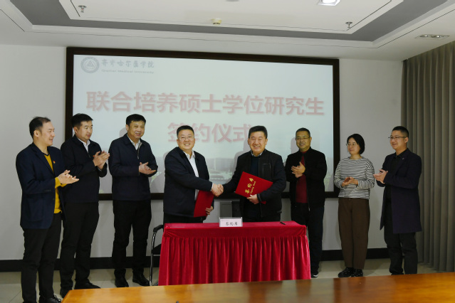座谈交流结束后,双方举办了签约仪式。耿磊副院长、于海涛副院长分别代表双方学校签订了联合培养硕士学位研究生协议书。双方均表示,希望有更多机会进行深度对接交流,通过深度开展合作,实现互惠共赢,推动双方的医学教育事业取得更新、更快、更大发展。