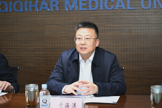 座谈交流期间,于海涛副院长对耿磊副院长一行表示热烈欢迎,对齐鲁医药学院前期对学院的大力帮助表示衷心感谢。他从学院概况、思政工作、专业建设、师资队伍、人才培养等方面全面介绍了学院近年来发展建设取得的成绩,分享了学院在学科建设等工作中的经验做法。耿磊副院长对学院高度重视此次来访工作表示感谢,他简要介绍了齐鲁医药学院的办学历程、办学特色和当前阶段主要工作目标。他表示,此次来访是一次学习之行、履约之行和合作之行,听取了于海涛副院长的详细介绍,对齐医有了更深入的了解,很多方面深受启发,受益匪浅,也看到了双方良好的合作前景。