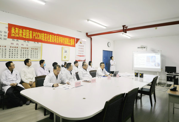 呼吸与危重症医学科二病区主任李鹏围绕科室建制、医疗、科室管理、教学和研究、人才培养等方面作汇报。专家组通过线上视频审查的方式对专病门诊、门诊综合诊疗室、肺功能室、呼吸内镜室、睡眠呼吸监测室、ICU及普通病房进行了线上实地全面考察,对科室医生、护士、呼吸慢病患者管理成效进行了全面核查。专家组对齐医附属二院PCCM科规范化建设成效给予充分肯定和高度评价,同时也提出了建设性意见和建议。