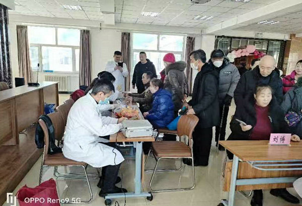 1月24日上午,值此喜迎龙年新春佳节来临之际,齐医附属二院外科第三党支部书记、肛肠外科主任、龙沙区人大代表、市助艾爱心协会会长周扬组织带领内分泌科二病区主任何静博士,体检科主任梁晓雨、眼科副主任宫学武、呼吸内科一病区副主任医师武悦、神经内科主治医师刘博、体检科住院医师柴玉、眼科、肛肠外科护士长王秀红,泌尿外科护士孟尹、体检科护士陈潇楠等一行10人,携带听诊器、血压计、血糖仪等诊疗设备和大米、豆油等慰问品,赴彩虹街道太阳社区老年公寓开展义诊咨询送温暖活动,义诊老人百余人、发放宣传单百余份。