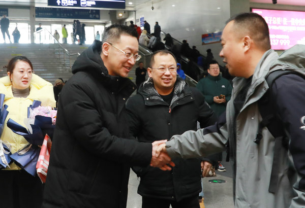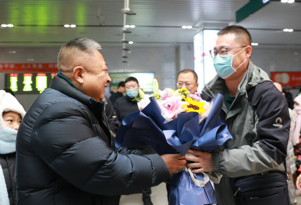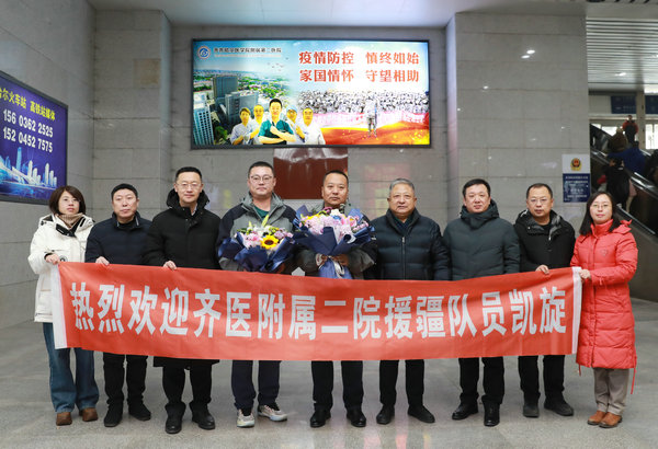 1月25日中午,神经内科七病区副主任医师刘建鑫、泌尿外科一病区副主任医师徐广驰圆满完成援疆任务,顺利返回我市。党委书记丁国旭、院长党委副书记武立刚、副院长刘波、医务部主任于海明、院办副主任王志超及泌尿外科一病区主任刘涛、护士长彭飞飞、神经内科七病区主任王丹、护士长丛莲华及科室同事们前往市火车南站,热情欢迎援疆专家凯旋归来。