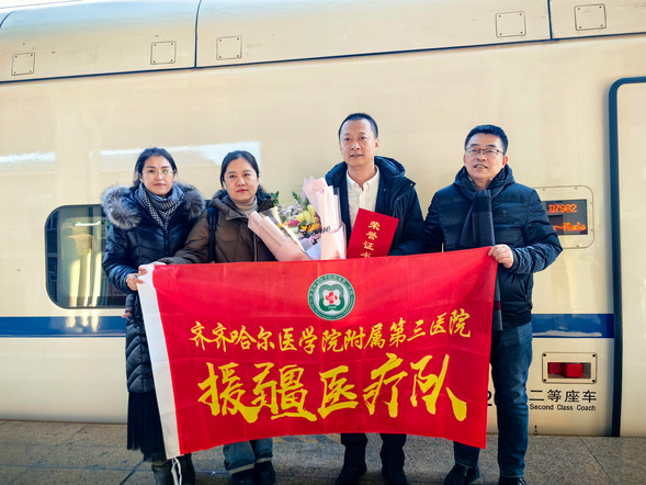 1月25日下午,随着D7981次列车缓缓驶入站台,我院磁共振科副主任、影像教研室副主任、住培放射影像专业基地教学主任孟鑫圆满完成对口支援新疆任务返回齐齐哈尔。我院党委书记李玉雪、人事科副科长王丽及部分医护人员前往车站迎接。