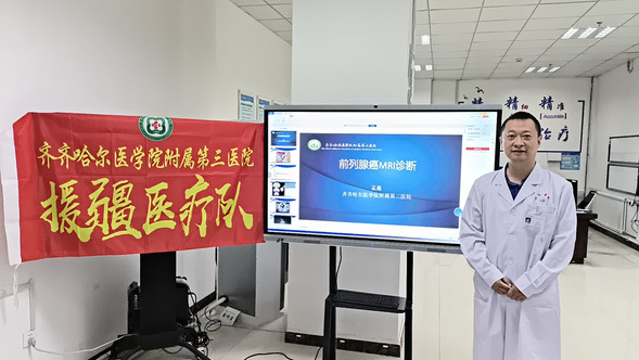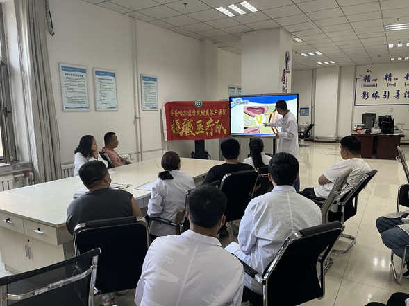 2023年8月,按照黑龙江省对口支援新疆医疗卫生工作安排部署,孟鑫作为“组团式”医疗援疆柔性人才,启程赴新疆生产建设兵团第十师北屯市,开始为期半年的援疆之旅。到达北屯市总医院医学影像中心后,孟鑫围绕腹盆腔影像诊断展开了亚专科教学指导和技术帮扶,通过每月举行一次影像诊断专业授课活动,帮助受援医院医学影像中心医护人员提升腹盆腔各种脏器疾病影像诊断领域的知识和技能,通过详细解读实际病例和分享最新的医学研究成果,帮助大家了解腹盆腔影像诊断领域中的挑战和机遇。在新疆工作半年,孟鑫得到了北屯市总医院领导的认可,也给当地百姓带去了实实在在的健康福祉。