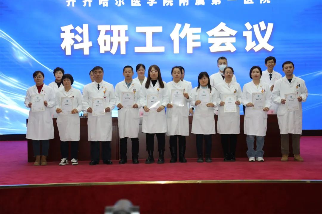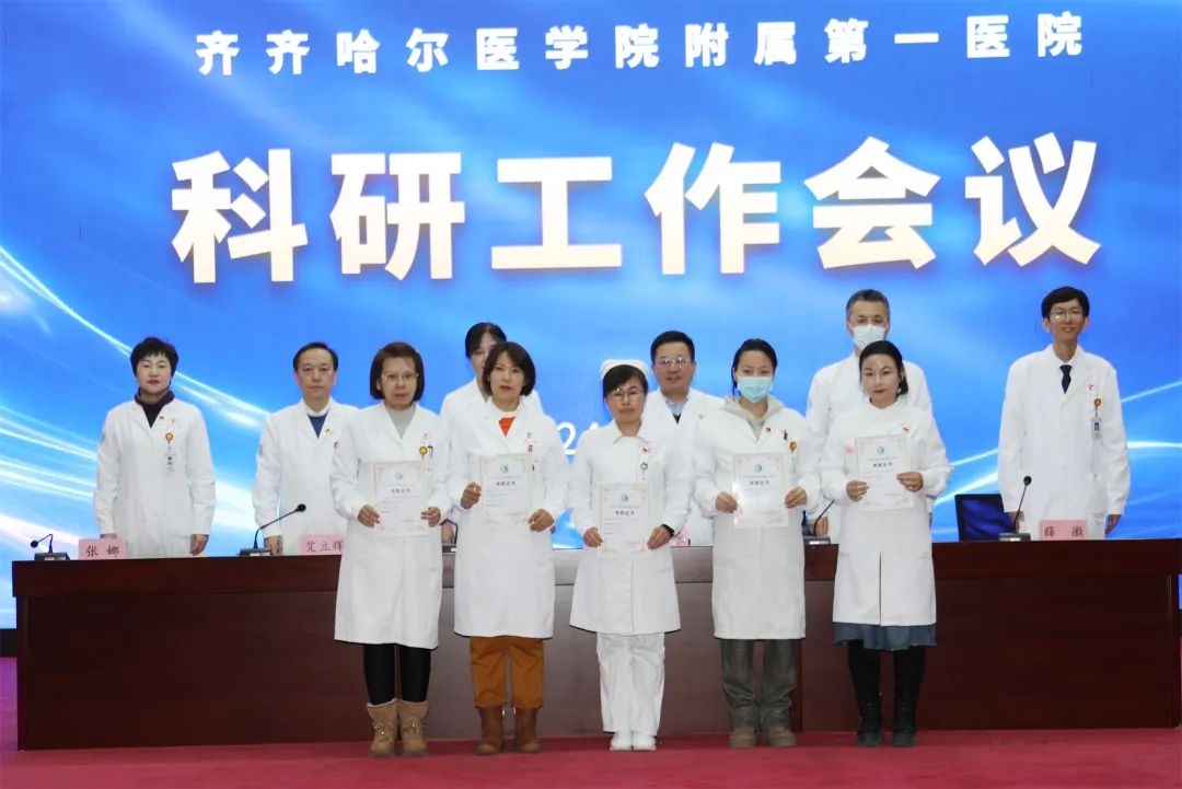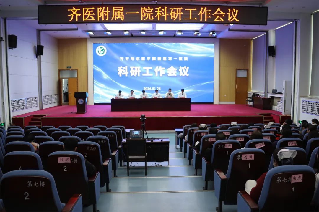 为总结表彰科研工作成绩,不断加强科研管理工作,加强学术型医院建设,1月24日,齐医附属一院在内科楼学术报告厅召开科研工作会议。医院领导班子、科主任、护士长、中层干部、硕士研究生导师、硕士研究生及医院教职工400余人在线上线下参会。副院长薛徽主持会议。
