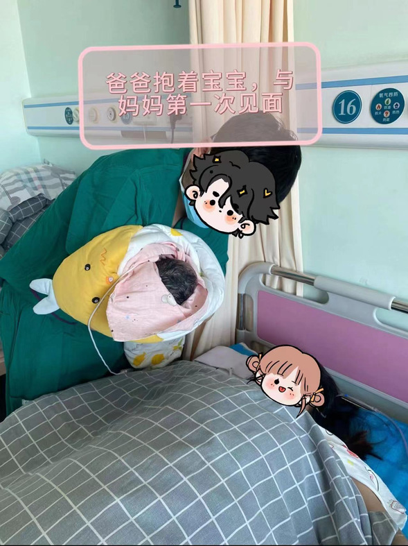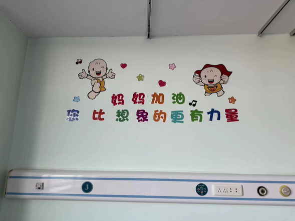 我院产科还关注每一位准妈妈的特殊需求,在分娩室开展家属的亲情陪伴、导乐分娩、无痛分娩等服务,并且张贴了带有鼓励话语的可爱贴纸,帮助准妈妈缓解产程中的焦虑恐惧等情绪,让其更加期待新生命的到来。