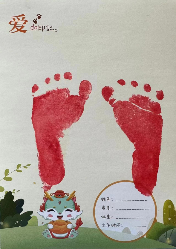 新生儿脚丫印,是宝宝来到这个世界上的第一个印记,也是宝宝出生后的第一份珍贵纪念,更是父母收到的最特别的礼物。产科医护人员将在宝宝出生后,让宝宝的小脚丫在特制的纸卡上留下可爱的印记,作为您永久的珍藏。