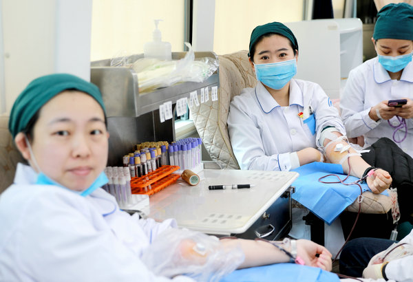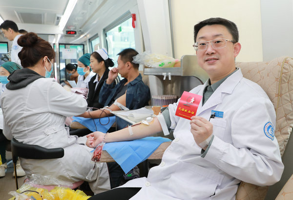 献血现场,有多年坚持献血的“老将”,也有满腔热情初次献血的“新兵”;有下夜班匆匆赶来的护士,也有刚刚查完房的临床医生,还有坚守在临床后方的行政后勤科室职工及家属,大家自发在献血车上排好队。