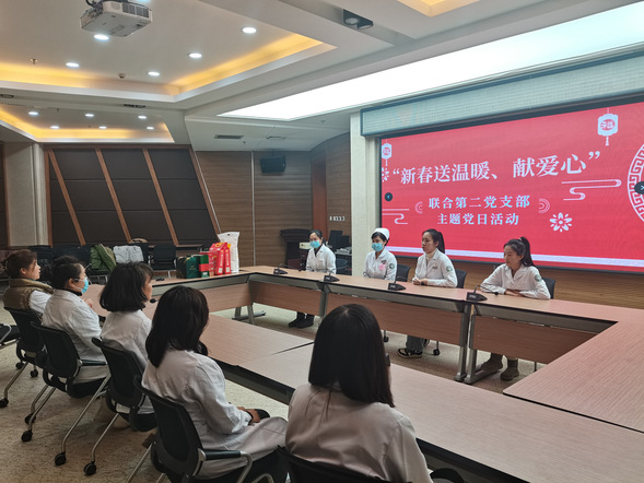 1月30日下午,联合第二党支部书记车琳带领支部党员在住院综合楼第四会议室,通过座谈的形式为困难职工排忧解难,为帮扶对象心内一科护士于宛秋送去慰问和祝福。