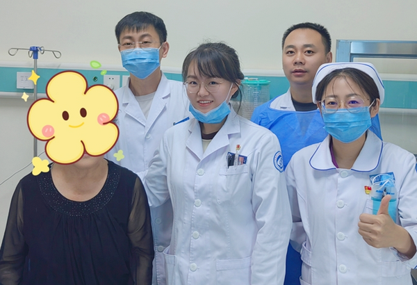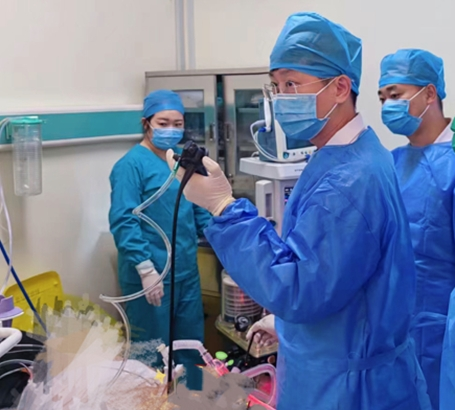 呼吸与危重症医学科一病区顾少岩主任、兰冰主治医师为患者行支气管镜下异物取出术