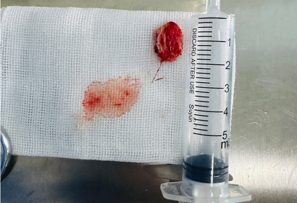 支气管镜下显示患者的左主支气管可见阻塞管腔,顾少岩主任以及兰冰主治医师支气管镜下巧取完整异物,竟是一块1.5cm骨质,术后患者气短及咳嗽症状明显缓解,无咯血及胸痛,复查胸部CT阻塞去除,病情平稳现已出院。