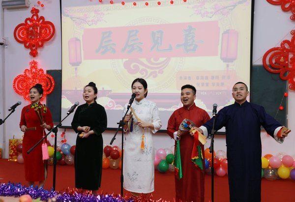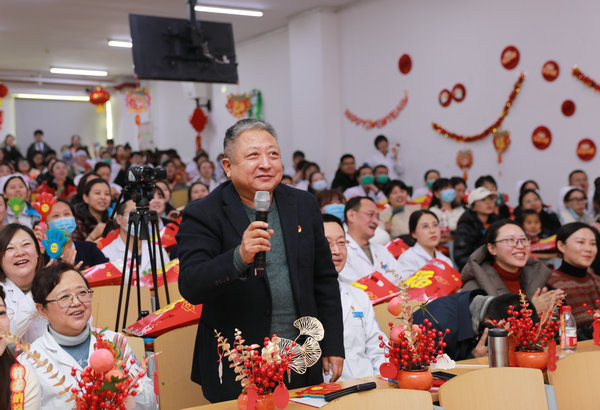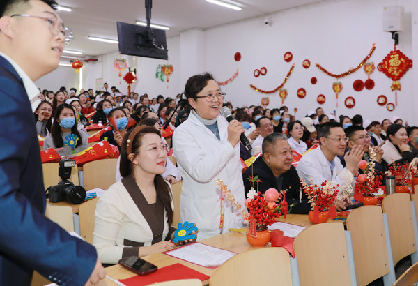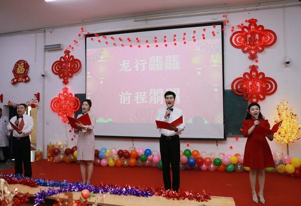 2月4日下午,在甲辰龙年春节即将到来之际,由工会主办的齐医附属二院2024新春联欢会在临床技能中心阶梯教室举行,台上载歌载舞,台下欢呼雀跃,汇聚成一曲“二附”动人的乐章。党委书记丁国旭、院长、党委副书记武立刚等领导班子与百余名职工欢聚一堂,共贺新春佳节,庆祝收获喜悦,憧憬美好未来。学生科副科长才艳雪、宣传科赵萌担任主持。