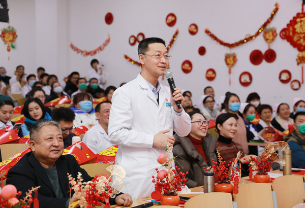 联欢会现场播放了医院党政领导及全体临床、医技科主任参与录制的新春拜年贺岁片,他们向全院职工送上新春祝福,同贺新春。