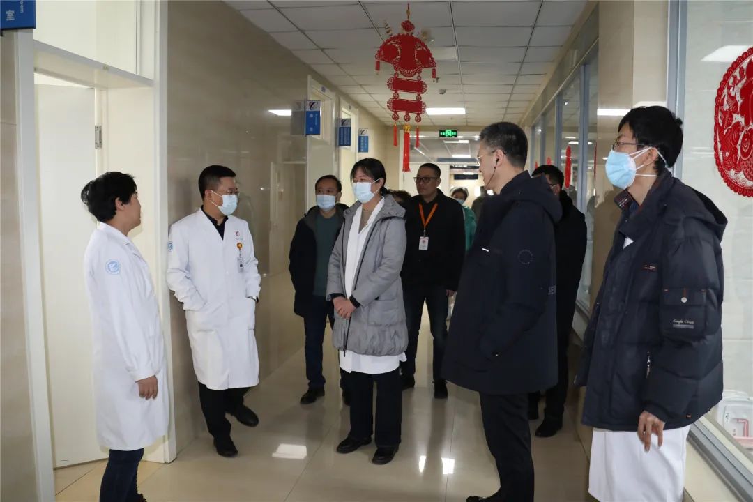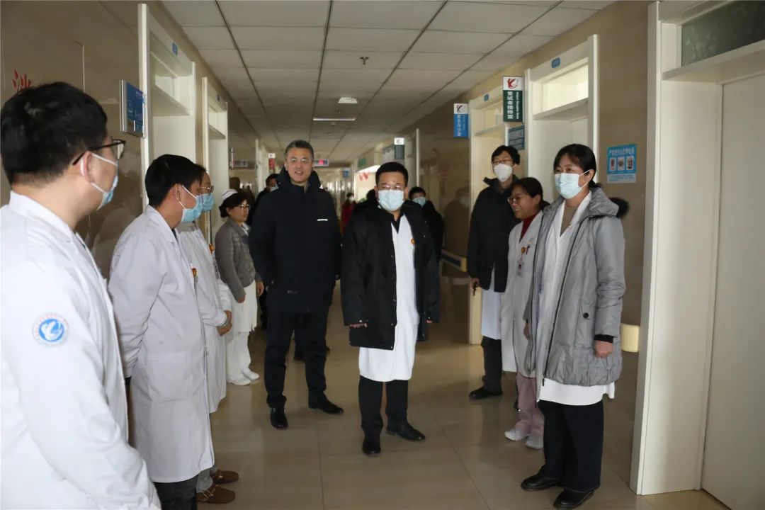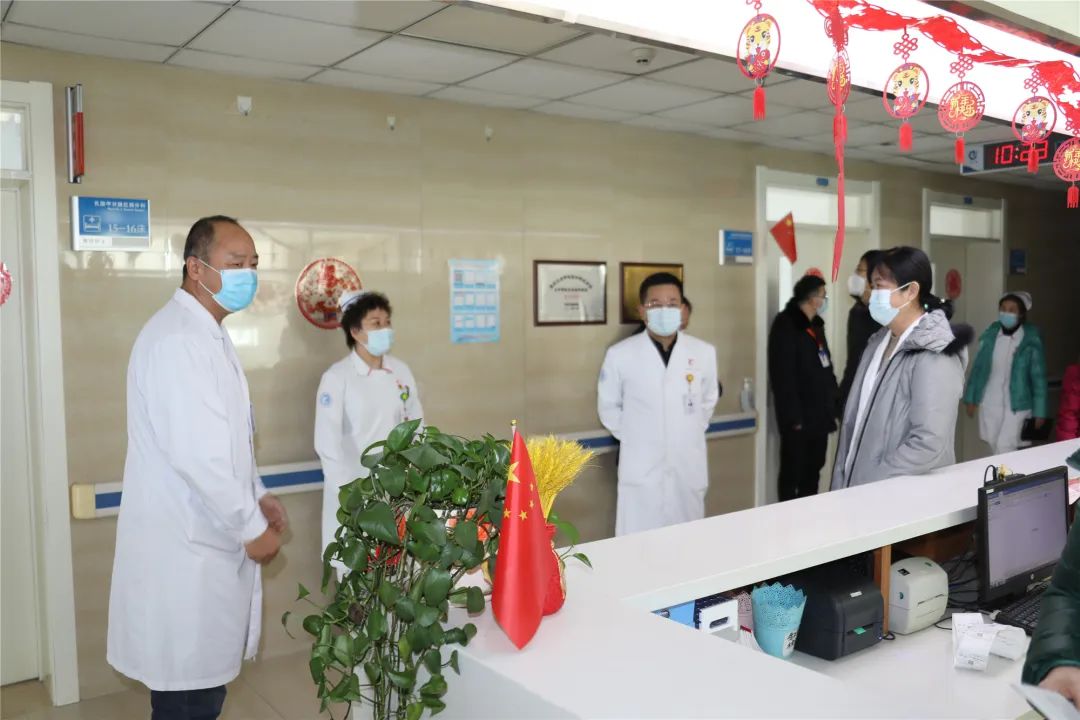 在各科室,院领导们与一线医护人员进行了亲切交流,询问工作和生活情况,感谢全体职工为医院各项工作做出的贡献,院领导在了解春节期间的值班安排后,叮嘱大家要做好应急准备,确保做好医疗安全及安全生产的各项工作。