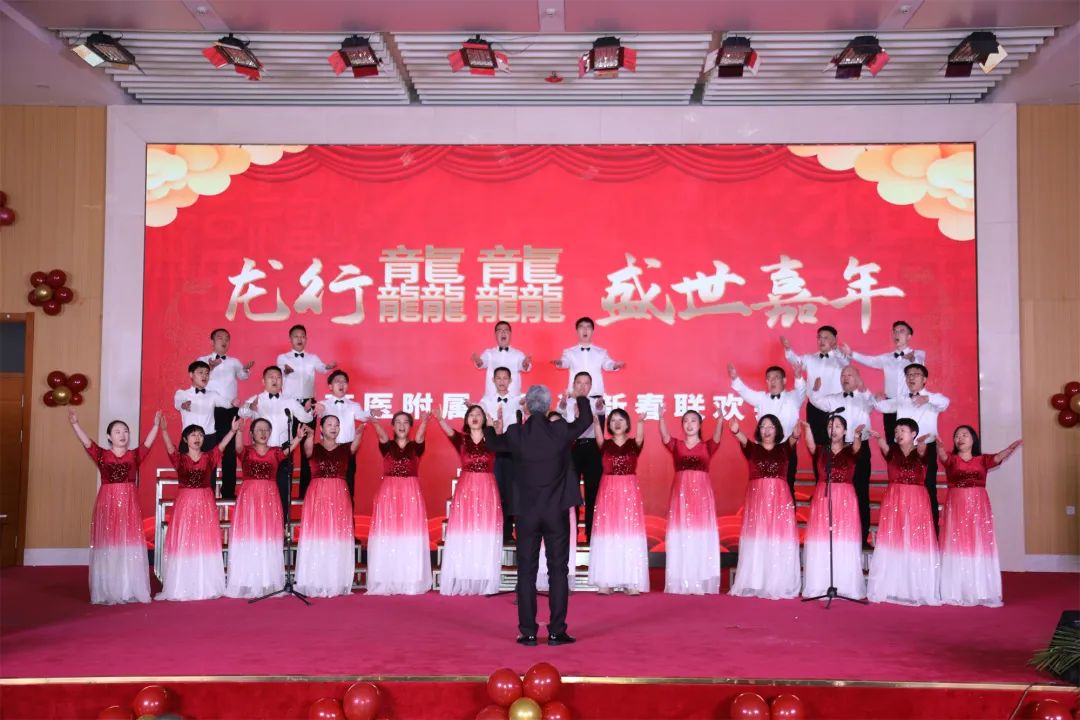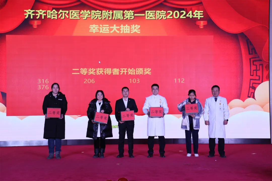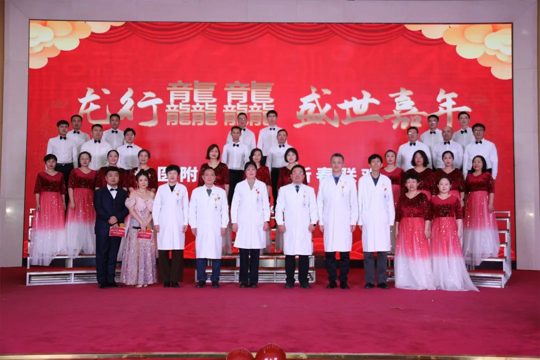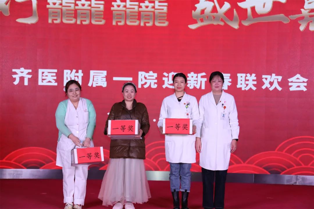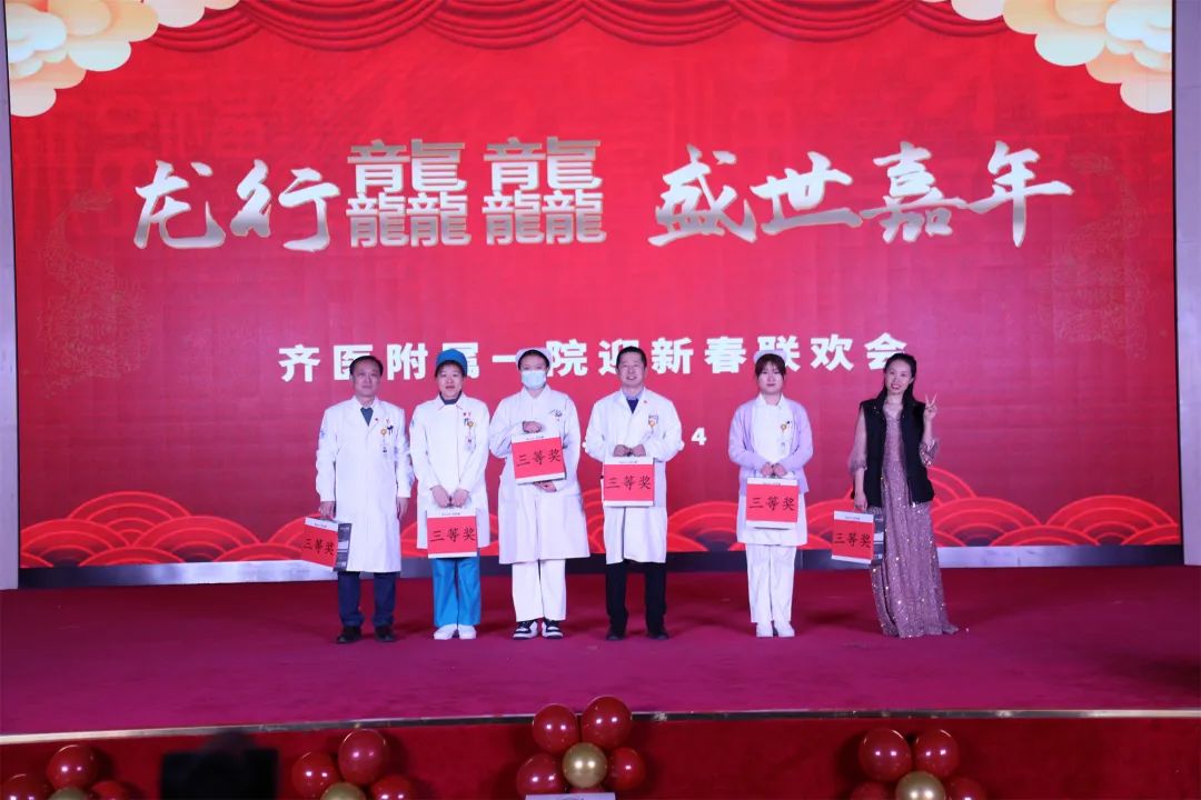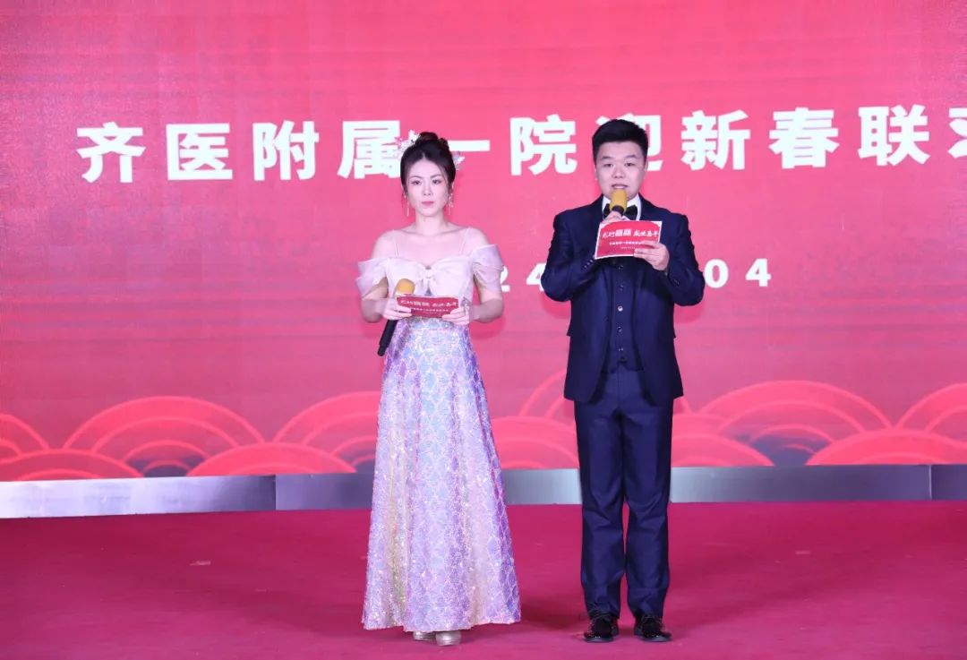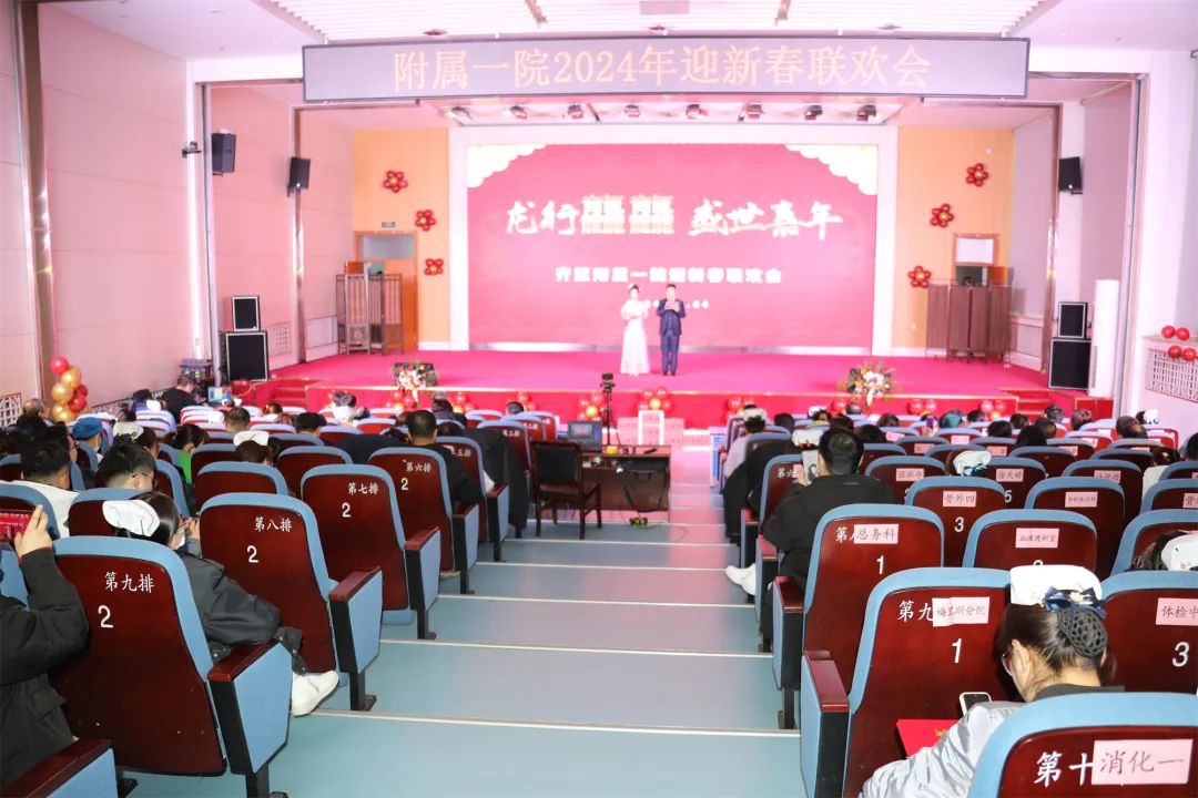 欢声笑语辞旧岁,虎跃龙腾迎新春。为充分展示全院上下朝气蓬勃,凝心聚力的精神风貌,抒发新一年砥砺前行、锐意进取的澎湃之情。在立春时节的2月4日下午,齐医附属一院在内科楼学术报告厅举办“龙行龘龘 盛世嘉年”迎新春联欢会。医院党委班子成员、干部职工及患者家属1000余人欢聚一堂,线上线下共同迎接甲辰龙年的到来。