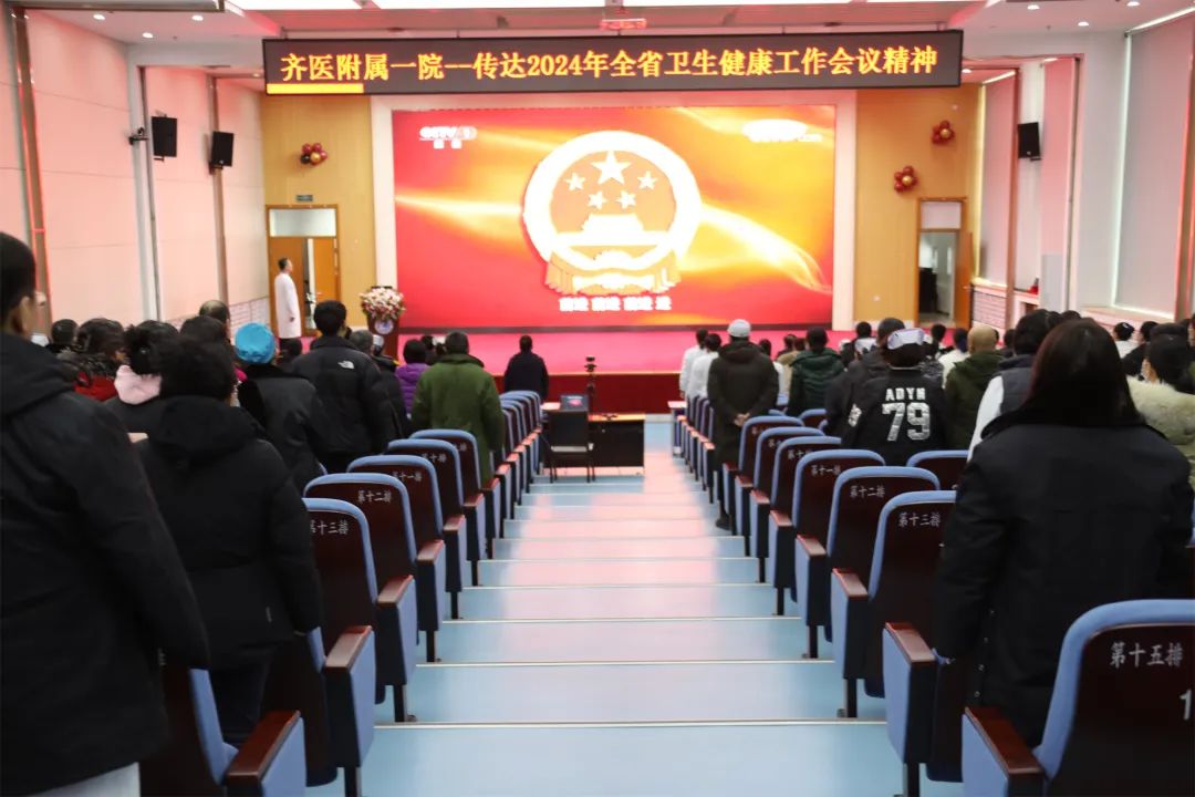 大会在雄壮的国歌声中拉开帷幕。党委书记刘晖同志传达省卫生健康工作会议相关内容,并重点传达了省卫健委主任方传龙在2月3日召开的2024年全省卫生健康工作电视电话会议上的讲话精神,重申省卫健委党组书记魏新刚对全省卫生工作和卫生健康系统党员干部的要求。刘书记强调今年是中华人民共和国成立75周年,是实施“十四五”规划的关键一年,是医院建院70周年,希望全院干部职工认真领会会议精神,以更好的政治站位和更强的责任担当,积极主动适应新时代卫生健康事业发展的新形势新任务,坚持以人民为中心的发展思想,全面提升医疗服务能力和水平,为建国75周年、建院70周年献礼。
