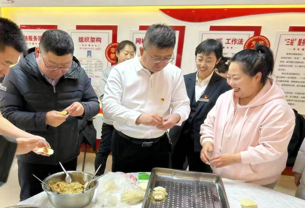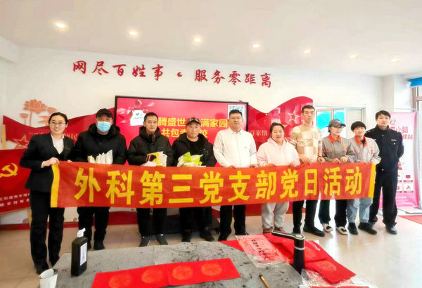 外科第三党支部书记周扬等支部党员与社区联合包饺子