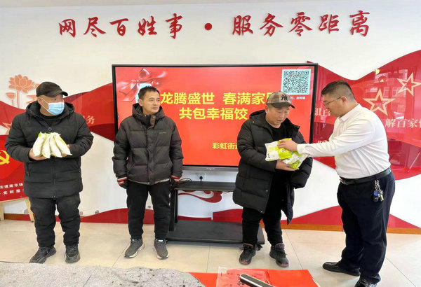 2月5日下午,值此龙年新春佳节到来之际,齐医附属二院外科第三支部书记周扬、宣传委员孟尹带领支部党员,前往龙沙区彩虹街道南市场社区联合开展包饺子、写春联、走访慰问残疾人、贫困户和低保户活动,共同喜迎新春送祝福。