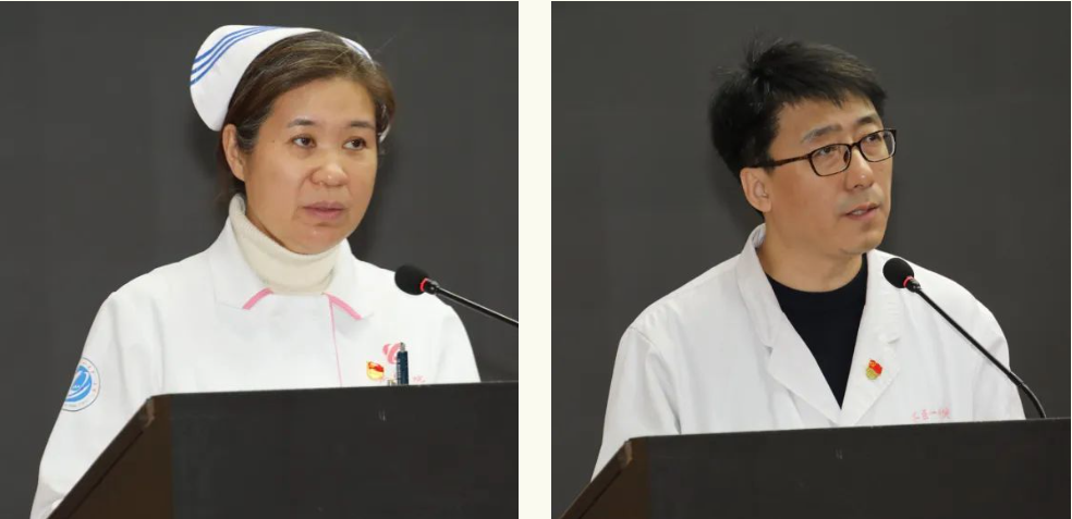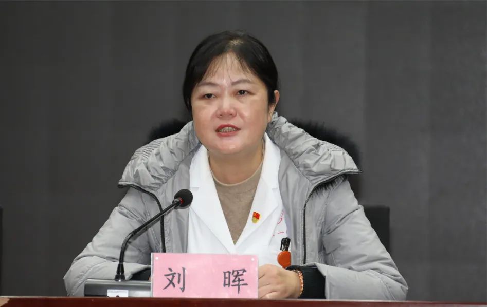 党委书记刘晖发表重要讲话。刘书记表示医院在院党委的坚强领导下取得了显著成绩,配合学院完成教育部新一轮本科教育教学审核评估;迎接省第十巡视组和学院纪委的巡视巡察工作;取得GCP国家级审核认证;在国家公立医院绩效考核中取得B的好成绩。并从神经内科四病区护士长于洋当选第十四届全国人大代表并领衔《护士法》议案、“万人评”活动、支部党建工作整体水平全面提升、深化能力作风建设活动有成效、人才建设方面、教学科研工作稳步提升、从严治党方面等方面全面总结医院党委2023年工作。刘书记强调2024年是医院建国75周年,建院70周年,医院将全面迎接三级甲等医院复审,希望全院职工坚持党建引领,深化党建与业务工作的深度融合,不断增强党组织的向心力、凝聚力、战斗力,把党的领导贯穿于医院各项工作全过程,进一步推动医疗、教学、科研能力、服务能力水平、管理能力提升,以高质量党建保障医院高质量发展,奋力开创医院高质量发展的新局面!