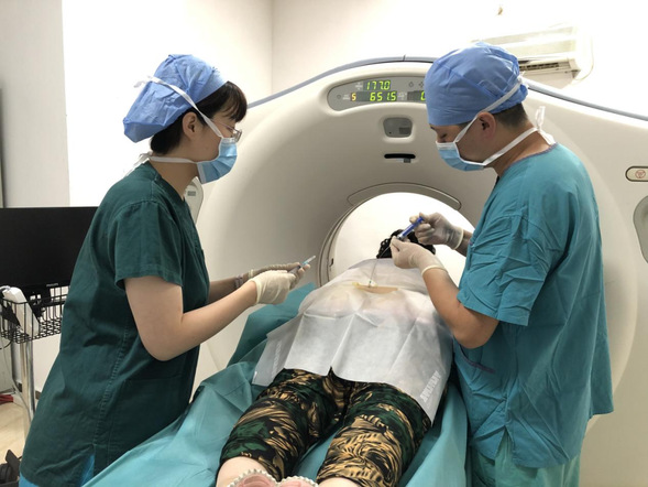 李老来到齐医附属三院疼痛科后,通过医生详细检查病情,被确诊为“腰椎椎管狭窄、交感持续性疼痛”。随后被安排入院,准备微创介入治疗。医院疼痛科医生王鑫凯和丛威亮为患者进行了无痛CT引导下行腰交感神经阻滞术,治疗过程仅用半个小时便顺利完成。成功完成治疗后,回到病房的李某感到发凉的下肢温度恢复了,疼痛减轻了,也能再次行走了。