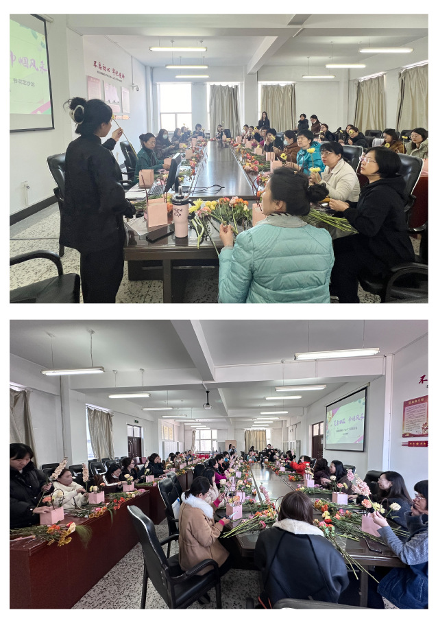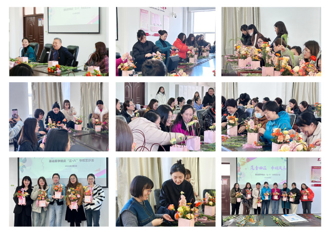 值此“三八”国际妇女节来临之际,为丰富基础医学院教职工的业余文化生活,促进学院女教职工身心健康,以更饱满的热情投入工作和生活中。2024年3月6日中午,基础医学院组织开展“花香四溢,展巾帼风采”暨“三八”妇女节主题花艺沙龙活动。