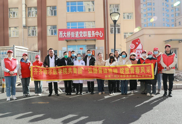 3月5日下午,值此第61个“学雷锋纪念日”来临之际,齐医学院团委联合附属二院团委携手走进百悦居社区,开展“弘扬雷锋精神 绽放青春风采” 义诊服务活动。义诊共设置了神经内科、内分泌科、全科医学科、眼科、乳腺外科、心理健康等10个咨询项目,保健科、医疗合作办、宣传科及大学生志愿者一行近20余人参加活动。
