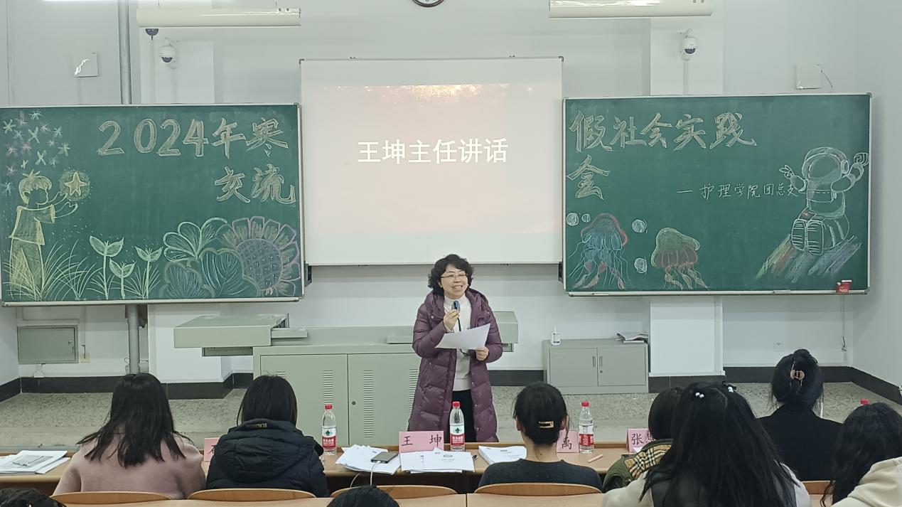 为深入学习宣传贯彻党的二十大精神,认真贯彻落实习近平总书记关于青年工作的重要思想,引导返乡学子在社会实践中受教育、提技能、强本领、长才干,3月6日12时,护理学院团总支在主楼北区404教室举办2024年寒假社会实践交流会。护理学院学生工作办公室主任、团总支书记王坤、护理学院正处级辅导员逄丽红、2021级辅导员石丽萍、2022级辅导员吴禹和2023级辅导员张恩昭作为评委参加交流会。