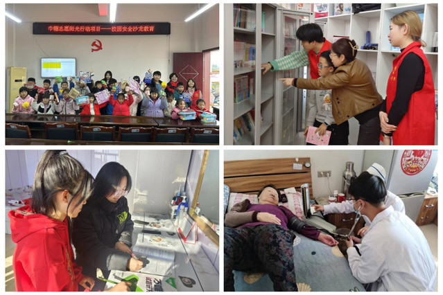 各级团组织、学生会、学生社团也纷纷结合各自专业特点和实际,积极参加当地各类志愿者团队,深入家乡街道、社区、乡村等一线开展帮扶行动。有的为留守儿童送去慰问物品;有的到留守儿童家中,为孩子们进行针对性的辅导补习,与留守儿童和老人谈心交流;有的深入家乡医院,与医护人员共同为当地居民普及医学科普知识;有的走进社区,为当地青少年开展理论宣讲,勉励他们明确人生方向,从小树立远大理想,为将来成为国家栋梁奠定坚实基础。志愿者用自己的一份力量、一份担当,让青春汇聚成成长路上的“暖流”,温暖了需要关心关爱的人群。