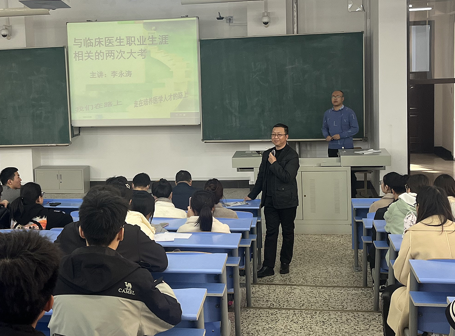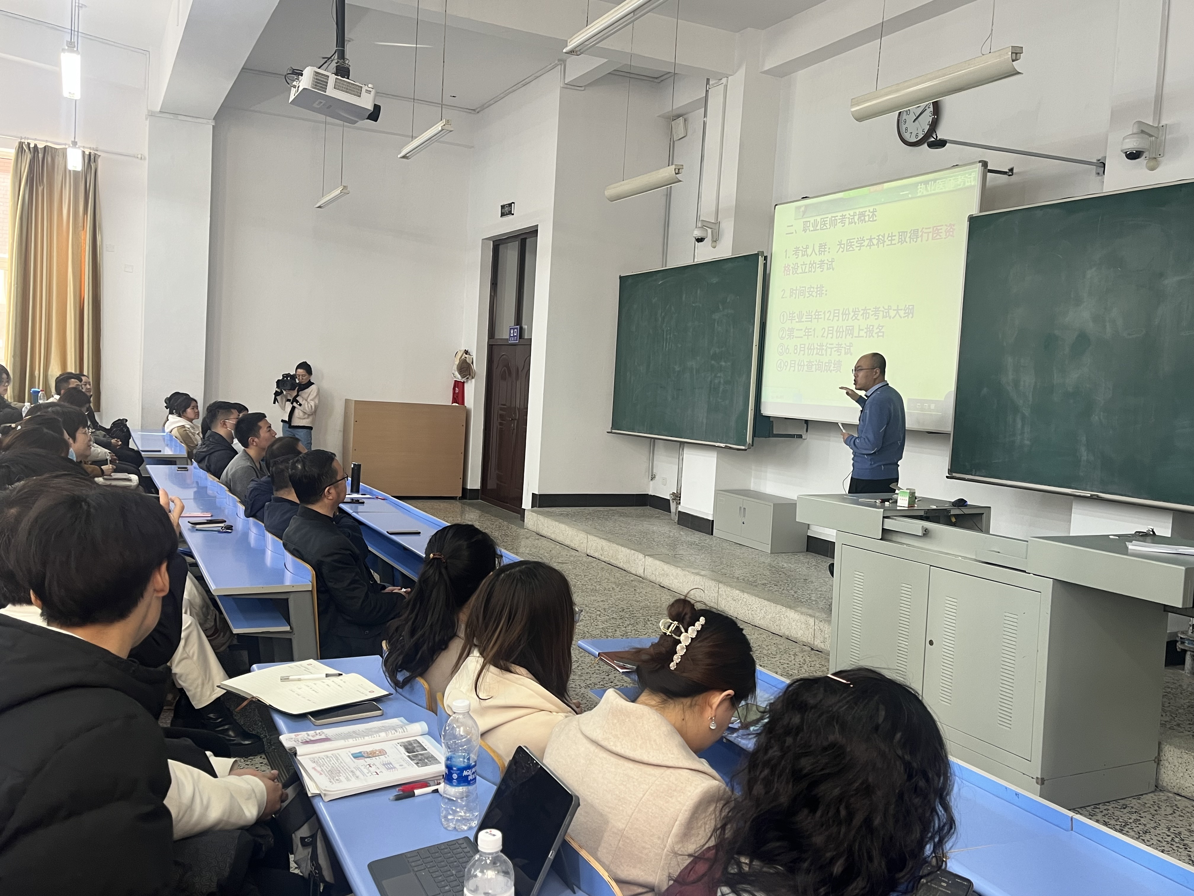 3月13日,基础医学院邀请执业医师资格考试研究组李永涛老师为广大师生开展执业医师资格考试专题讲座。临床医学专业学生和基础医学院教师200余人在教学主楼北区116教室参加了本场讲座。