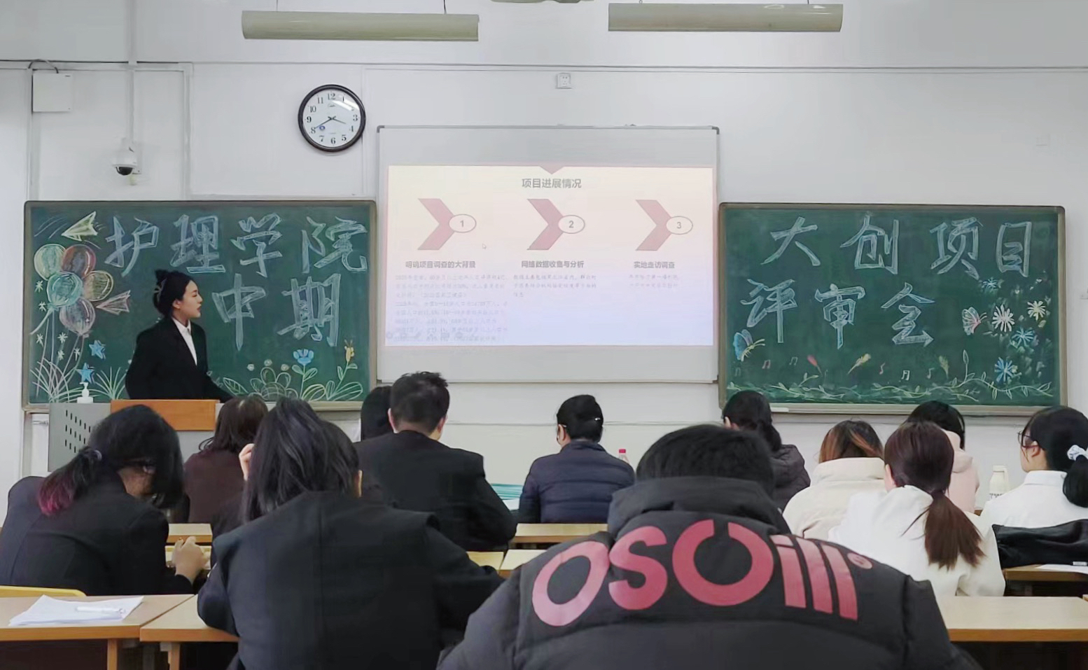 为进一步提高学生的科研意识、创新意识,培养学生科研能力,确保大学生创新创业训练计划项目顺利开展,3月13日14:00,护理学院在主楼北区410教室举办2024年大学生创新创业训练计划项目中期评审会。护理学院党总支副书记付桂华、副院长李桂玲、党总支正科级组织员魏洪娟、社区护理学教研室主任齐丽、内外科护理学教研室主任徐春苗担任本次评审会评委,各项目组成员参加此次评审会。