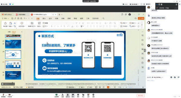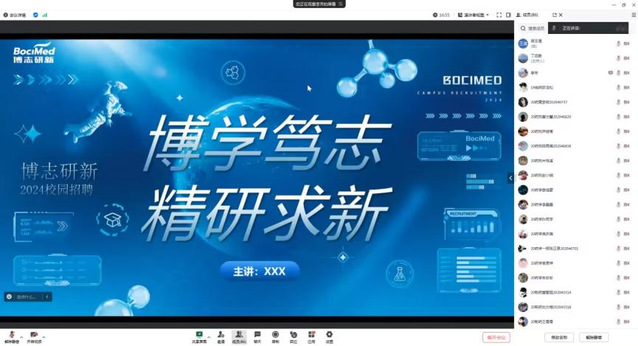 为促进学院毕业生高质量就业,搭建毕业生与用人单位信息交流和双向选择的平台,持续做好毕业生就业服务工作,3月15日下午,药学院通过线上的方式举办上海博志研新药物研究有限公司专场就业招聘宣讲会,药学院党委书记丛凯、党委副书记孔寰宇、学工办主任梁玉清、毕业班辅导员董玉晶、李丹及2024届毕业生参会。