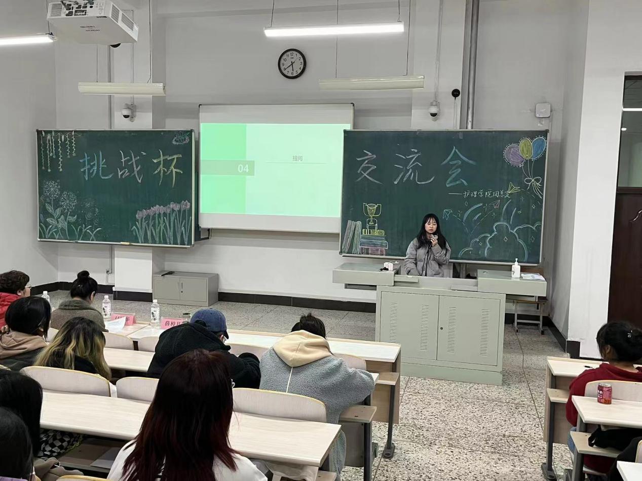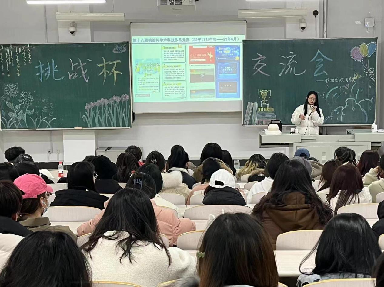 会上,作为“挑战杯”全国大学生课外学术科技竞赛省级金奖、银奖获奖团队选手,薛棹月、史心月两位同学分别从导师团队的选择,选题以及收获感悟等方面进行了精彩讲解。随后,两位主讲人与现场同学进行了互动交流,针对同学提问的相关问题一一作答,使同学们很受启发,受益匪浅。最后,付桂华副书记作总结,对两位同学的精彩分享表示感谢,强调大学生积极参加“挑战杯”等竞赛活动的意义,希望同学们能够勇于创新,通过竞赛不断增强自身科研意识,提升综合素质能力。