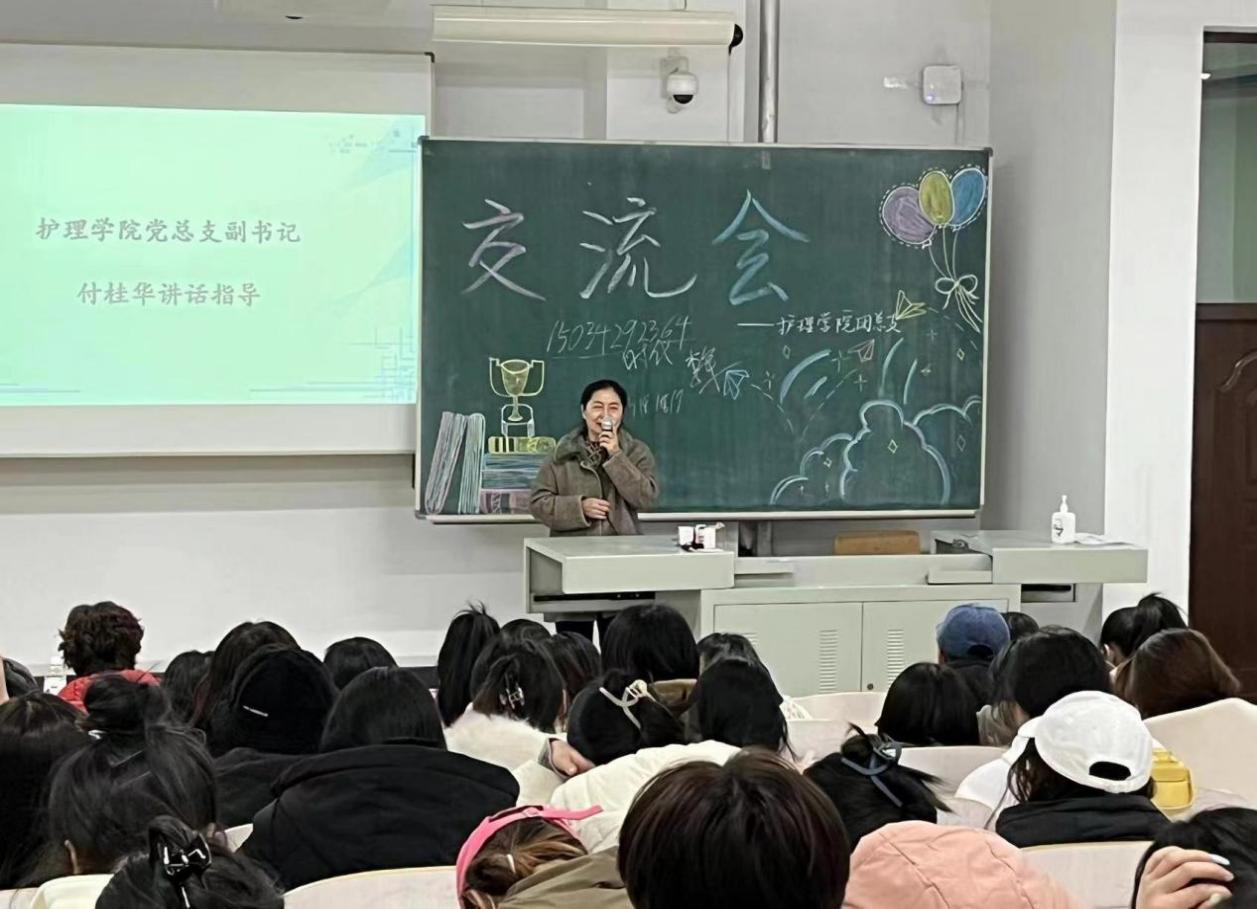 为培养学生的科学研究意识,不断提高实践能力,3月18日下午,护理学院在北区105教室举办“挑战杯”全国大学生课外学术科技作品竞赛经验交流会,交流会采用线上线下结合方式进行。护理学院党总支副书记付桂华、团总支书记王坤出席会议,500余名同学参加交流会。护理学院2019级学生薛棹月、病理学院2020级学生史心月分享了比赛经验。